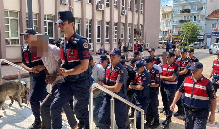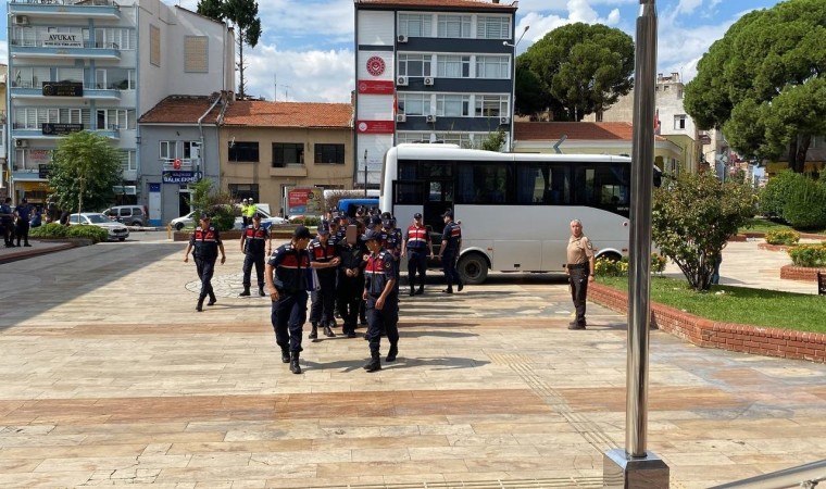 Aydın’ın Efeler ilçesinde ’dur’ ihtarına uymayıp kaçan araç sürücüsü kovalamacanın ardından durdurulması esnasında bıçaklanan polis olayı ile ilgili jandarma tarafından gözaltına alınan 8 şüpheli işlemlerinin ardından adliyeye sevk edildi.