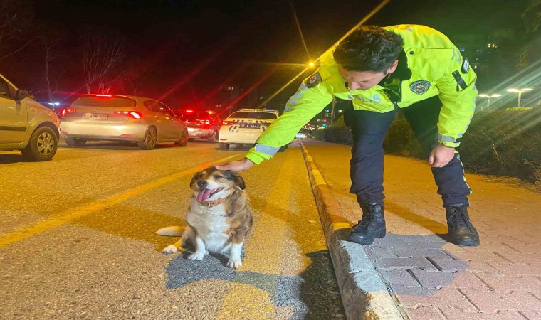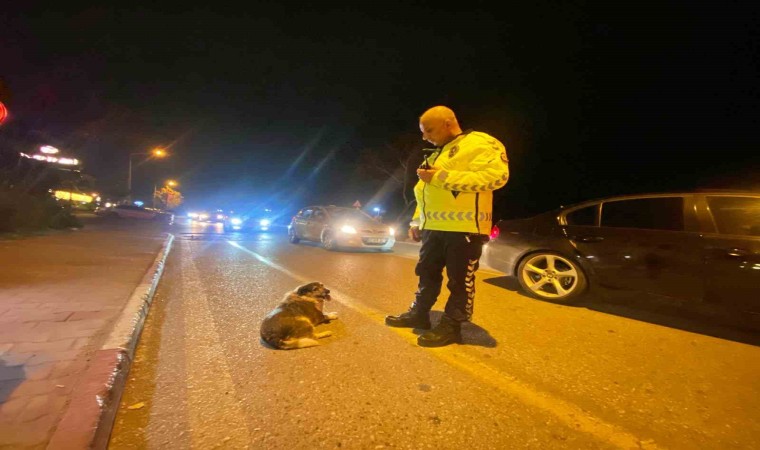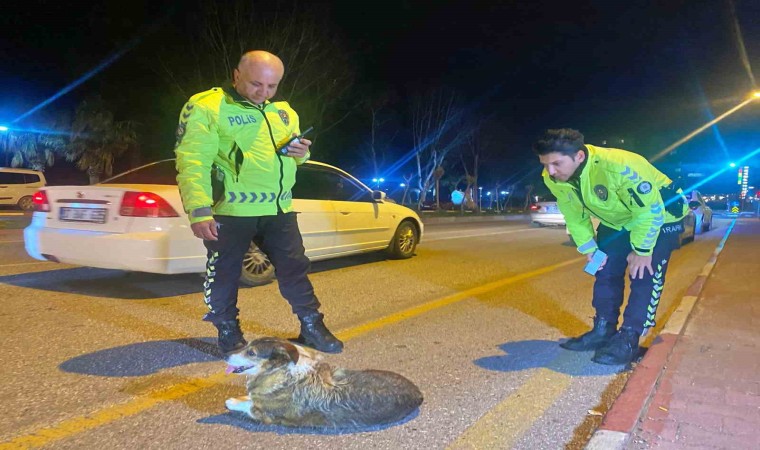 Antalya’da devriye halindeki trafik polisleri, yolun karşısına geçmeye çalışan ve yaralı olduğu anlaşılan sokak köpeğinin başından ayrılmadı. Köpeğin akan trafikte bir aracın altında ezilmemesi için başında nöbet tutan ve yola koydukları dubayla köpeği koruma altına alan iki trafik polisi, yaklaşık 45 dakika sonra köpeğin aksayarak da olsa yürüyerek ayrılmasıyla bölgeden ayrıldı.