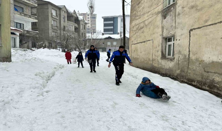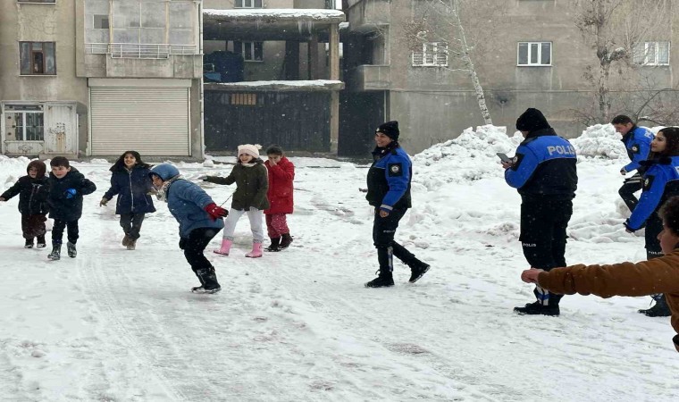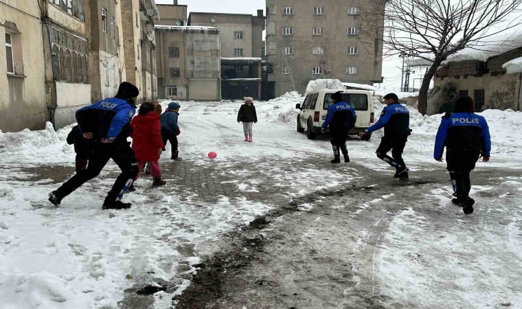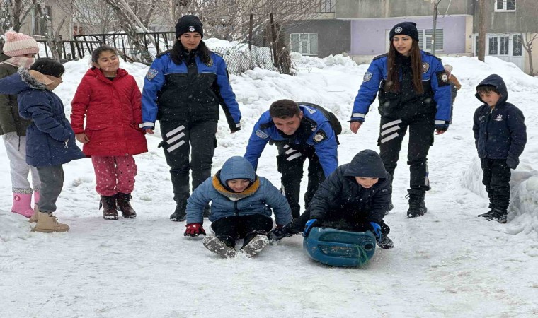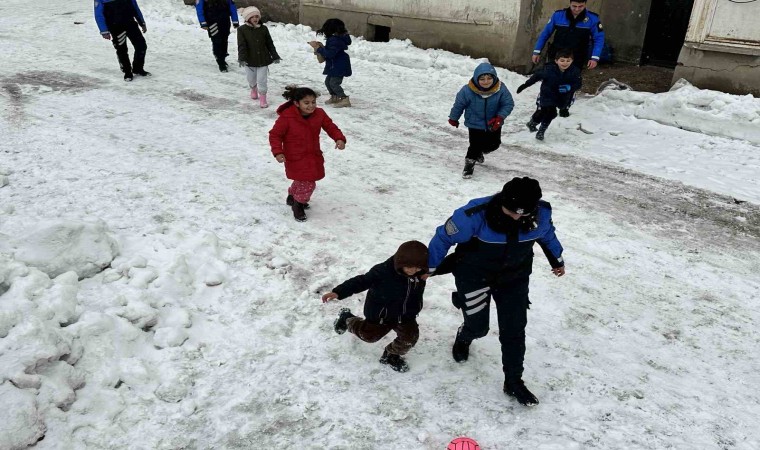 Sabah saatlerinde ilçede başlayan kar yağışı hayatı olumsuz yönde etkilerken, yarıyıl tatilinde olan çocukları ise sevindirdi. Toplum Destekli Polislik Büro Amirliği ekipleri karda oynayan çocuklarla bir araya gelerek, önce bidon ve poşetlerle kaymanın keyfini çıkardı. Daha sonra kar topu ve futbol oynayan çocuklar, polislerle güzel bir gün geçirmenin mutluluğunu yaşadı.