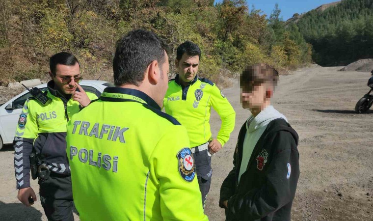 Trafik polisleri seyir halinde kasksız ve plakasız motosikleti durdurmak isteyince, sürücü bir anda kaçmaya başladı. Karabük - Eskipazar karayoluna çıkan motosiklet sürücüsü Karabük Belediyesine ait Fen İşler Müdürlüğüne girerek izini kaybettirmeye çalışsa da Trafik ekiplerinden kaçamayacağını anlayınca motosikleti ağaçlık alanda bırakıp kaçmaya başladı. Trafik ve yunus ekiplerini beşine takan sürücü Yunus ekiplerince kıskıvrak yakalandı. Plakasız olan motorun şasesinden sorgulamasını yapan ekipler motorun haciz yakalamalı 78 ABF 950 plakalı olduğunu kaçan sürücünün ise 17 yaşındaki ehliyetsiz Mert Ç. olduğunu belirledi.