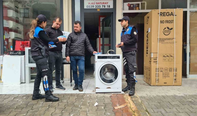 Antalya’nın Alanya ilçesinde İlçe Emniyet Müdürlüğü Toplum Destekli Polislik Büro Amirliği tarafından ikinci el eşya alım satımı yapan esnafa illegal yollardan elde edilen suç eşyaları konusunda bilgilendirme yapıldı.