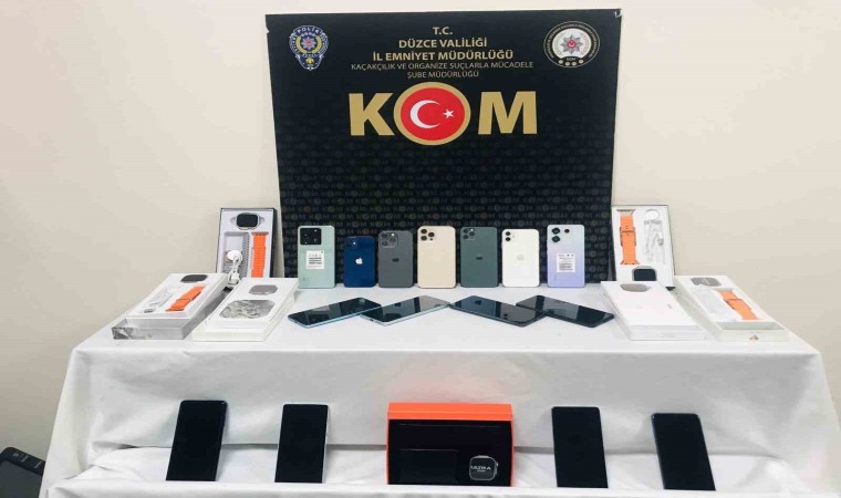 DÜZCE(İHA) – Düzce İl Emniyet Müdürlüğüne bağlı ekipler yaptıkları operasyonda yurda kaçak yollarla giren 15 cep telefonu ve 7 akıllı saat ele geçirilirken şüpheli 1 kişi hakkında adli işlem yapıldı.
