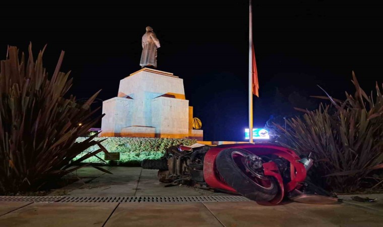 Muğla’nın Menteşe İlçesinde plakasız motosiklet sürücüsü polisten kaçarken Cumhuriyet Meydanında Atatürk heykelinin bulunduğu alana girerek kaza yaptı.