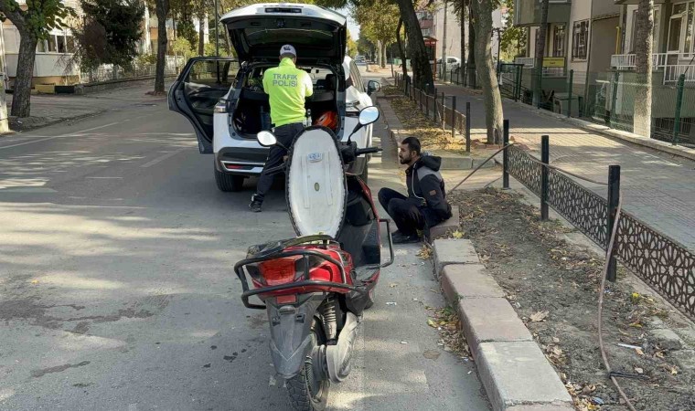 Yapılan sorgulamada motosiklet sürücüsü Seyfettin H’nin ehliyetinin olmadığını ve plakasız motosiklet kullandığı tespit edildi. Sürücüye plakasız ve ehliyetsiz motosiklet kullanmaktan 40 bin 343 lira para cezası kesildi.