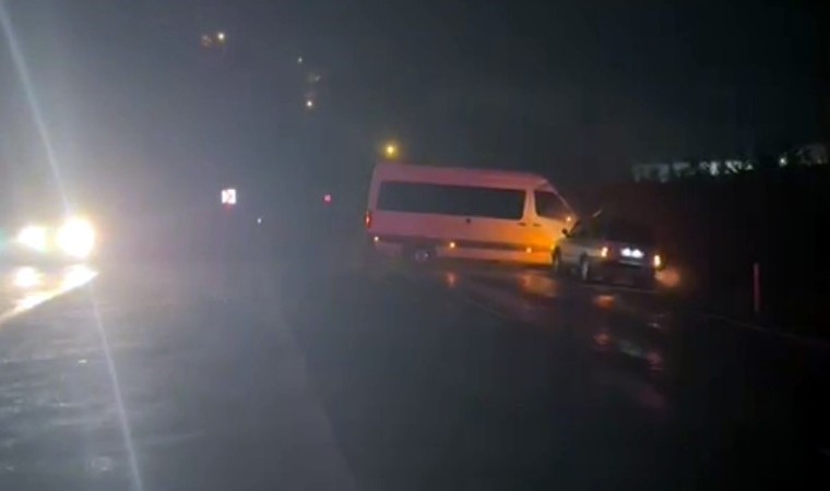 Bartın’da polisten kaçan bir sürücü, yolda jandarmaları görünce panikleyerek yolda duran bir minibüse çarptı. Kazada 2 kişi yaralanırken, kaza anı saniye saniye cep telefonu kamerasına yansıdı.