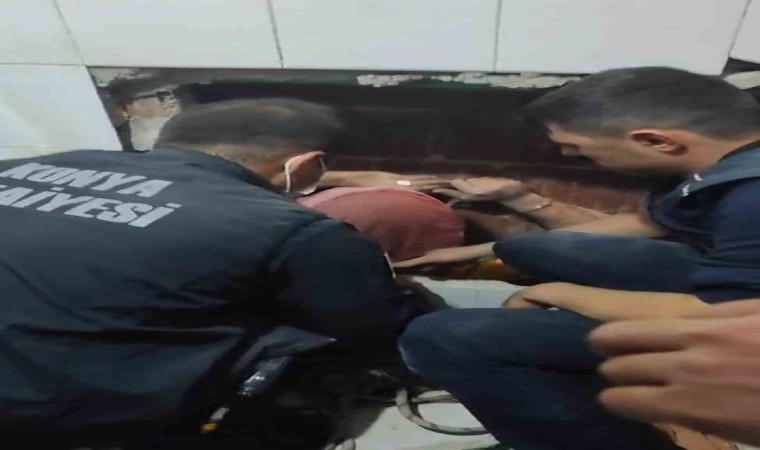Olay, öğle saatlerinde merkez Karatay ilçesi Kuzgunkavak Mahallesi Kartopu Sokak üzerinde bulunan 4 katlı bir binada meydana geldi. Edinilen bilgiye göre, İl Emniyet Müdürlüğü Asayiş Şube Müdürlüğüne bağlı Aranan Şahıslar Şubesi ekipleri, hakkında gasp, hırsızlık, yağma gibi suçlardan 40 yıl hapis cezası bulunan cezaevi firarisi Hasan U.’nun sokak üzerinde bulunan binada saklandığını belirledi. Binaya giriş yapan polis ekiplerini fark eden Hasan U., 4. katta bulunan dairenin tuvalet havalandırma boşluğuna saklanmak istediği sırada boşluğa sıkıştı. Polis ekiplerinin Hasan U.’yu sıkıştığı yerden çıkartamaması üzerine olay yerine itfaiye ekipleri sevk edildi. İtfaiye ekipleri şahsın sıkıştığı havalandırma boşluğunun duvarını kırarak Hasan U.’yu yaklaşık 1 saatlik çalışmanın ardından sıkıştığı yerden kurtardı. Havalandırmadan kurtarılan Hasan U., polis ekipleri tarafından gözaltına alınarak ekip aracına bindirildiği sırada yakınları ekiplere zorluk çıkarttı. Şahsın emniyetteki işlemlerinin ardından cezaevine teslim edileceği öğrenildi.