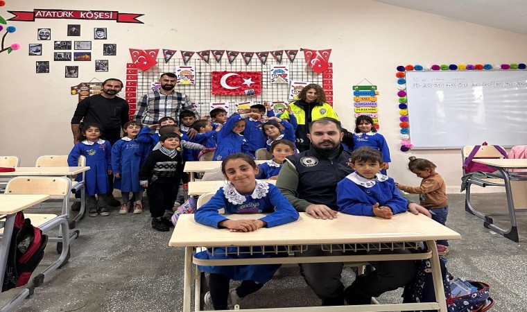 Erzurum’un Hınıs ilçesinde köyleri ziyaret eden emniyet personeli, çocuklara unutamayacakları saatler yaşattı.