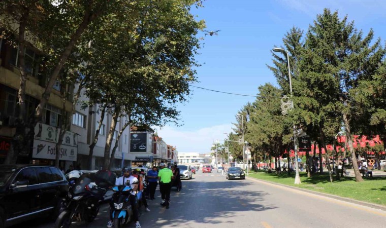 Sakarya İl Emniyet Müdürlüğü’ne bağlı ekipler, şehir genelinde halkın huzur ve güvenliği için uygulamalarını sürdürüyor. Bu çerçevede İl Emniyet Müdürlüğü Trafik Denetleme Şube Müdürlüğü’ne bağlı ekipler denetimlerini artırdı. Adapazarı ilçesi Atatürk Bulvarı ve çevresinde motosikletli sürücülere yönelik uygulama gerçekleştiren Motosikletli Şahin ekipleri trafikte aykırı olan sürücülere adeta göz açtırmadı. Dron destekli yapılan denetimlerde; 56 motosiklet sürücüsüne kask takmadan araç kullanmak, sürücü belgesiz araç kullanmak, abart egzozlu araç kullanmak, tescil plakasını takmadan araç kullanmak gibi muhtelif maddelerden toplamda 210 bin 596 TL idari para cezası uygulandı. 11 motosiklet trafikten men edilerek yediemin otoparkına çekildi.
