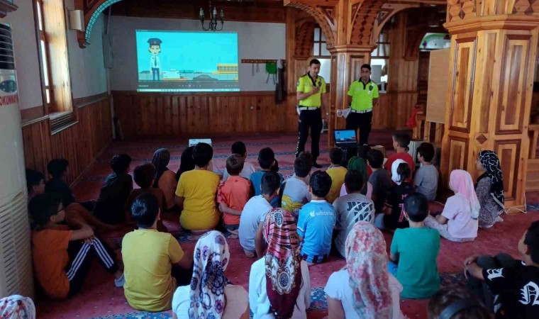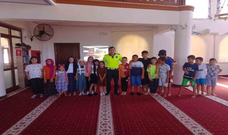 Düzce İl Emniyet Müdürlüğü Trafik Tescil ve Denetleme Şube Müdürlüğü ekipleri, yaz Kur’an Kursları için camilere giden öğrencilere trafik eğitimi verdiler.