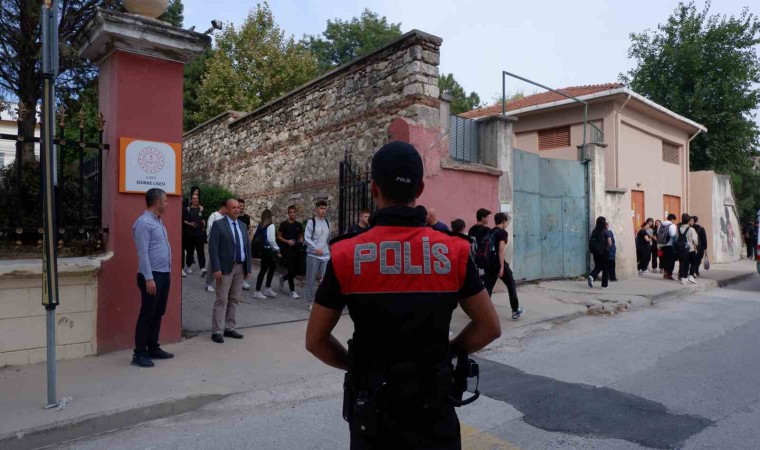 Edirne’de polis ekipleri tarafından okul çevrelerinde sıkı denetim gerçekleştirildi.