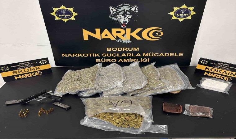 Bodrum Narkotik Suçlarla Mücadele Büro Amirliği ekipleri, il dışından uyuşturucu madde getiren şahıslara yönelik operasyon yapıldı. Yalıkavak Mahallesi’nde gerçekleştirilen operasyonda 2 şüpheli yakalanırken şahısların aracında narkotik arama köpeği Tina desteği ile yapılan aramalarda; 3 kilogram skunk, 490 gram kokain, 1 adet ruhsatsız tabanca, 21 adet fişek ele geçirildi.