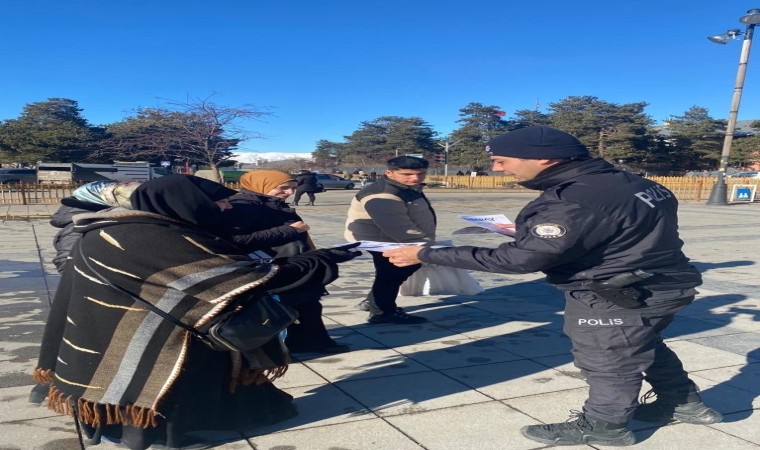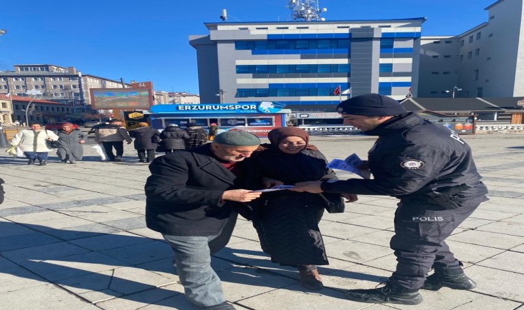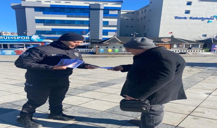 Erzurum polisi vatandaşları dolandırıcılığa karşı dikkatli olmaları için broşür dağıtılıyor.