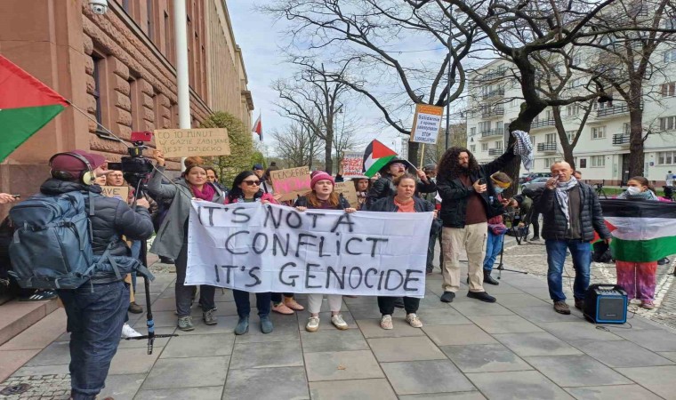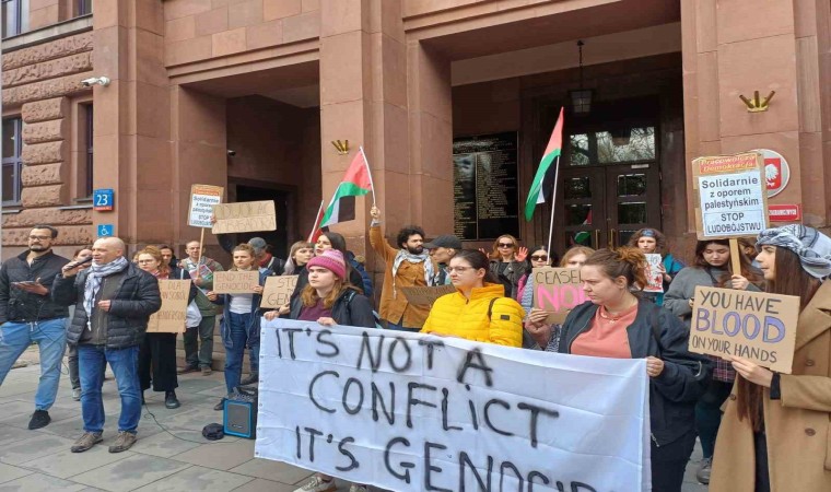 İsrail’in Varşova Büyükelçisi Jakow Liwne’nin Polonya Dışişleri Bakanlığı’na geldiği sırada bir grup, bakanlık binası önünde ellerinde Filistin bayraklarıyla protesto gerçekleştirdi. İsrail ile her türlü ilişkinin kesilmesini, Büyükelçi Liwne’nin sınır dışı edilmesini isteyen grup, "Özgür Filistin", "Filistin’de soykırımı durdurun" sloganları attı.