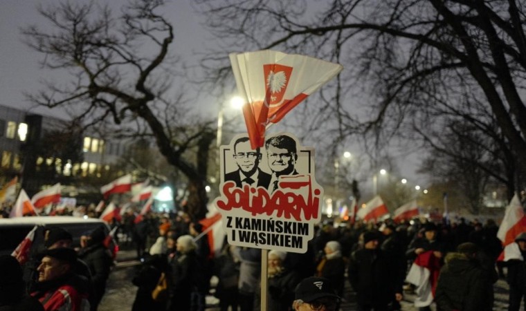 Polonya’da ana muhalefetteki Hukuk ve Adalet Partisi (PiS) destekçileri, eski İçişleri Bakanı Mariusz Kaminski ile Yardımcısı Maciej Wasik’in tutuklanmasını ve kamu yayın kurumlarındaki yönetim değişikliğini protesto etti.