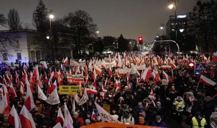 Polonya’da bir ay önce iktidarın değişmesiyle ana muhalefet partisi konumuna geçen Hukuk ve Adalet Partisi (PiS) destekçileri, Başkent Varşova’da "Özgür Polonyalıların Protestosu" adı altında gösteri düzenledi.