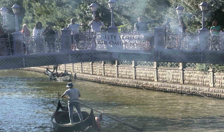 Eskişehir’in gözde turistik yerlerinden olan Adalar bölgesindeki Porsuk Çayı, bir evlilik teklifine daha sahne oldu. Kız arkadaşına evlilik teklif etmek için arkadaşlarıyla birlikte plan yapan genç, bundan habersiz olan kız arkadaşı ile birlikte gondol gezisine çıktı. Bindikleri gondol Porsuk Çayı üzerindeki köprüye yaklaştığında arkadaşlarına ‘İşte seninle, bir ömür böyle’ yazılı pankartı açtıran genç, son zamanların popüler şarkısı ‘Aşkın Olayım’ eşliğinde sevgilisine evlenme teklifinde bulundu. Romantik teklifine ‘Evet’ cevabı veren gelin adayı şaşkınlığını gizleyemezken, yakılan meşaleler güzel görüntüler oluşturdu. Bu güzel ana tanıklık eden vatandaşlar ise genç çifti alkışlayarak mutluluklarına ortak oldu.