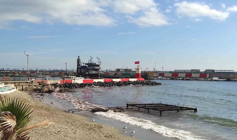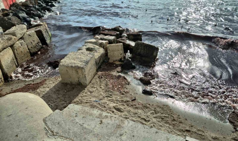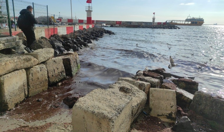 Marmara Denizi’nin Tekirdağ Süleymanpaşa kıyıları, poyraz fırtınasıyla birlikte kızıl renge büründü.