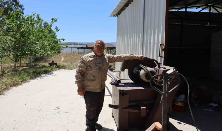 Aydın’da inşaat sektörü ile uğraşan Hayrettin Güven, imalathanesinin yanındaki bahçesini kendi imal ettikleri tekerlekli el sabanı ile işliyor. Pratik zekası ile işini kolaylaştıran Güven, 10 kişinin yapacağı işi yarım saatte bitirdiğini ifade etti.