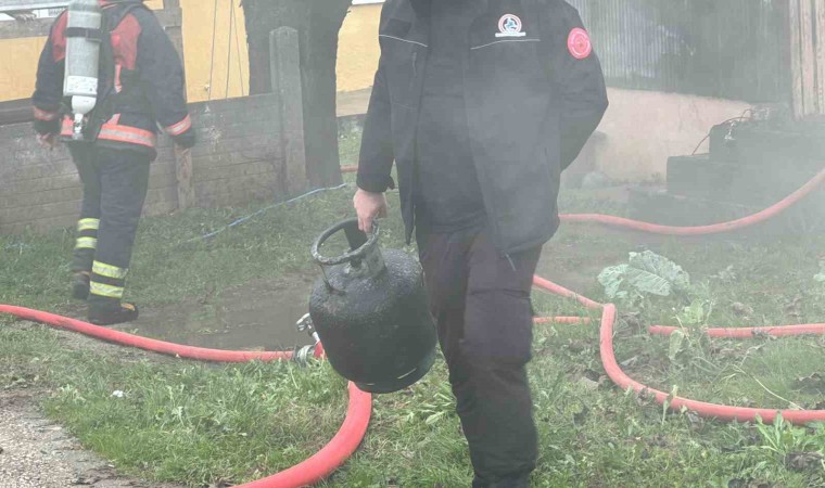 Düzce’de prefabrik evde çıkan yangın itfaiye ekiplerinin müdahalesiyle söndürüldü. Yangında evden çıkarılan ve gaz kaçıran tüp korkuttu.