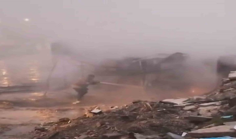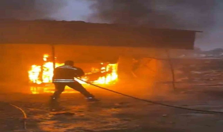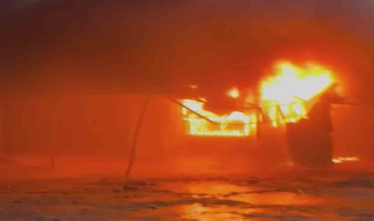 Hatay’ın Antakya ilçesinde prefabrik iş yerinin alev alev yandığı anlar cep telefonu kamerasına yansıdı.