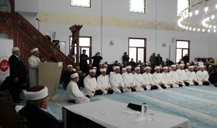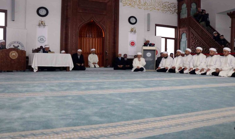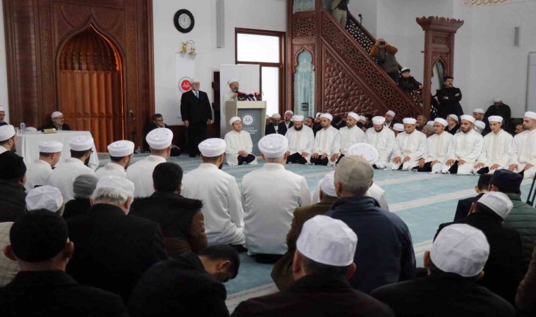 Törende konuşan Ali Erbaş, “Kur’an-ı Kerim, Rabbimizin Peygamber efendimize indirdiği, gönderdiği en büyük mucize. İnişi ile hıfzı ile tilaveti ile kıraati ile mucize. Bugün hocalarımızın eğitimini tamamlamış olduğu Aşere-Takrib-Tayyibe usulü ile okunuşuyla da mucize. Böyle bir kitap yok dünya üzerinde. Biraz önce örnek okuyuşları dinledik, hocalarımızın bir Ayet-i Kerimeyi kıraat imamlarımızın ve o imamlarımızın ravilerinin farklı farklı okuyuş tarzları ile okuduğunu dinledik. İşte Cenab-ı Hakkın, ‘Denizler biter de, Rabbimin kelimeleri bitmez’ dediğine bir örnektir bu. Her okuyuşta ayrı bir güzellik var, ayrı bir mana var. Kur’an-ı Kerim sürekli akan bir çeşme gibidir. Çeşmenin suyu her aktığında nasıl taze akıyorsa, Kur’an-ı Kerim de her okunduğunda sanki yeni inmiş gibi okunuyor” ifadelerine yer verdi.
