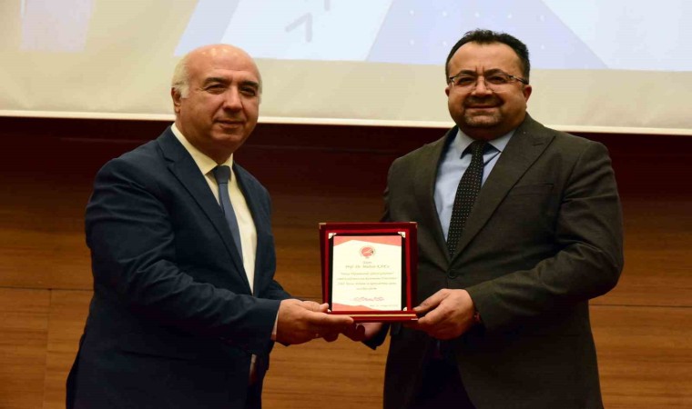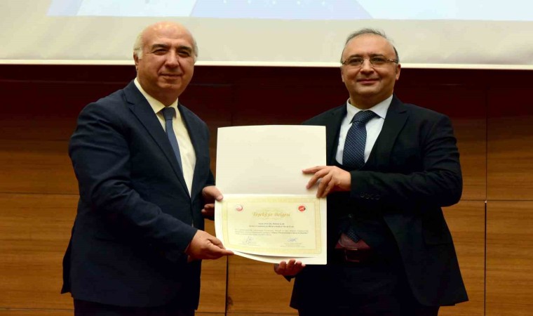 Prof. Dr. Muhsin Kar’a konuşmasının ardından plaket ve teşekkür belgesi takdim edildi.