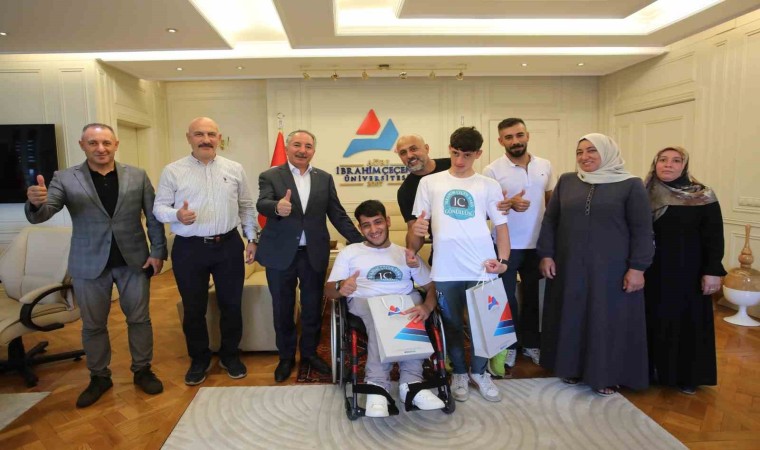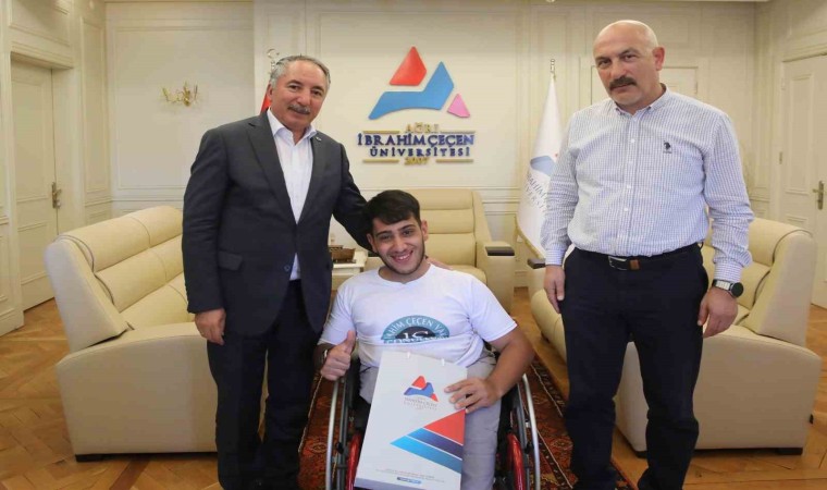 Ağrı İbrahim Çeçen Üniversitesi (AİÇÜ) Rektörü Prof. Dr. Abdulhalik Karabulut, 29-31 Temmuz 2024 tarihlerinde Trabzon’da düzenlenen Para Yüzme ve DEAF Yüzme Kulüplerarası Türkiye Şampiyonası’nda farklı kategorilerde 3.’lük madalyası alarak büyük bir başarıya imza atan Yusuf İncekaya ve Taha Burak Duzlu ile antrenörleri Doç. Dr. Baykal Karataş’ı misafir etti.