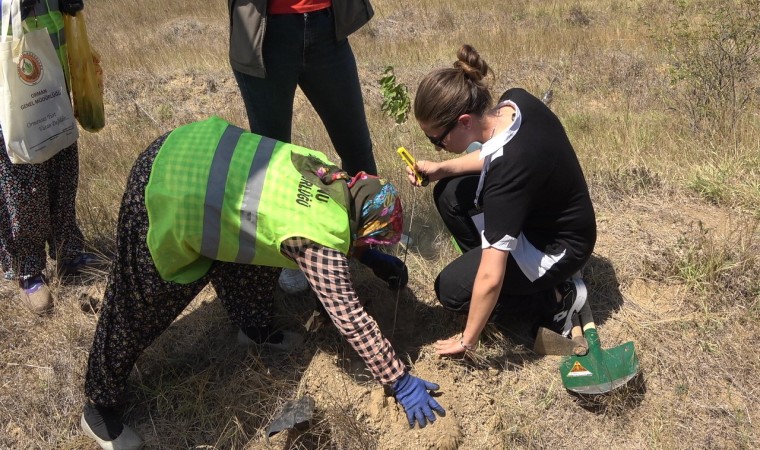 Gölköy Fidan İşletme Şefi Esra Sarıalioğlu’nın fidanın nasıl dikilmesi konusunda bilgi vermesinin ardından katılımcılar, daha önceden hazırlanan fidanları toprakla buluşturdu.
