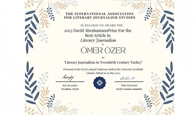 Türkçe adı Uluslararası Edebi Gazetecilik Araştırmaları Derneği olan The International Association for Literary Journalism Studies’in bu yılki David Abrahamson en iyi makale ödülü, Anadolu Üniversitesi İletişim Bilimleri Fakültesi Gazetecilik Bölümü Öğretim Üyesi Prof. Dr. Ömer Özer’e verildi.