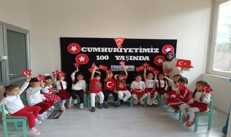 Minik öğrenciler, cumhuriyetin 100. yıldönümüne özel kıyafetleri ve bayraklarıyla okuldaki etkinliğe katılarak, bol bol fotoğraf çektirerek coşku dolu bir gün geçirdiler.