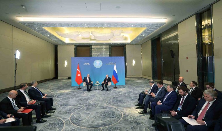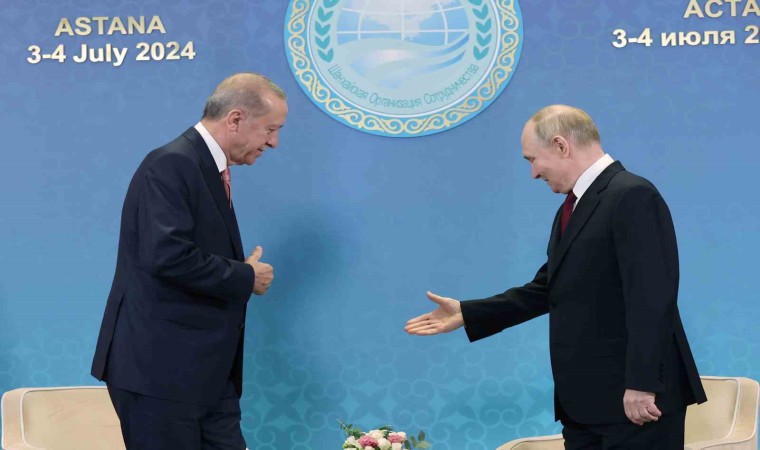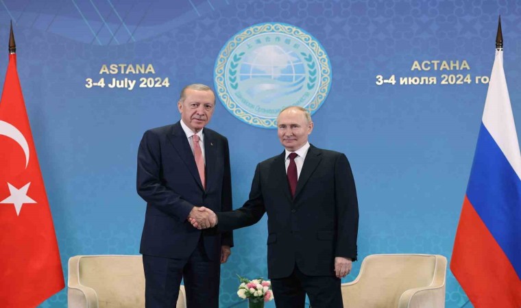 Cumhurbaşkanı Recep Tayyip Erdoğan, Rusya Devlet Başkanı Vladimir Putin ile bir araya geldi. Putin, "Dünyadaki tüm zorluklara rağmen Rusya-Türkiye arasındaki ilişkiler adım adım gelişiyor ve ilerliyor” dedi.