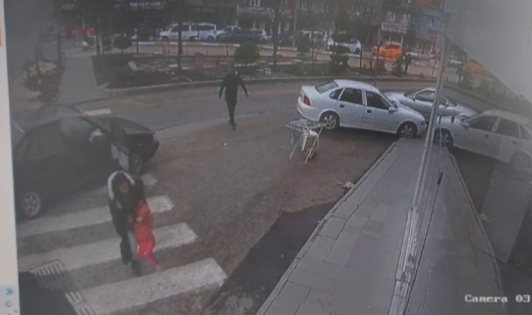 Güvenlik kamerası görüntülerinde kadın ve çocuğun bir anda kendini dışarıya attığı, belirli bir süre otomobilin bulunduğu alanda bekledikleri ve çevrede bulunan İhlas Pazarlama mağazasına girdikleri yansıdı. Görüntülerde, korku sebebi ile ağlayan çocuğun iş yeri çalışanı tarafından su verilerek sakinleştirildiği anlar yer aldı.