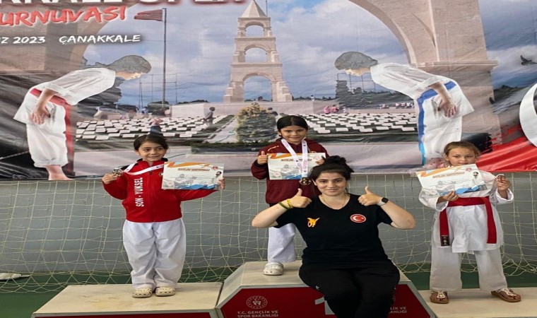 Çanakkale'deki turnuvada, Cumayeri Belediyespor Karate Takımı sporcuları büyük başarı elde etti. 45 kilo kategorisinde Arda Ozan Mercan birinci, 28 kilo kategorisinde Zeynep Zümra Mercan ikinci olarak kürsüye çıktı.