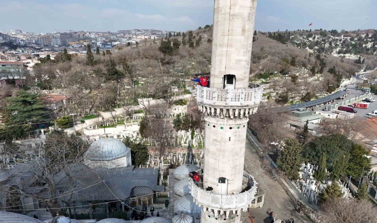 Osmanlı’nın 450 yıllık mirası olan mahyaların ilki, Ramazan ayının öncesinde hazırlanarak Eyüpsultan Camii’ne asıldı. Son mahya ustalarından Kahraman Yıldız ve ekibi tarafından asılan ilk mahya havadan görüntülendi.