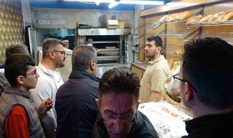 İlçedeki fırınların önünde sıcak pide almak isteyenlerin oluşturduğu kuyruklar uzadıkça uzadı.