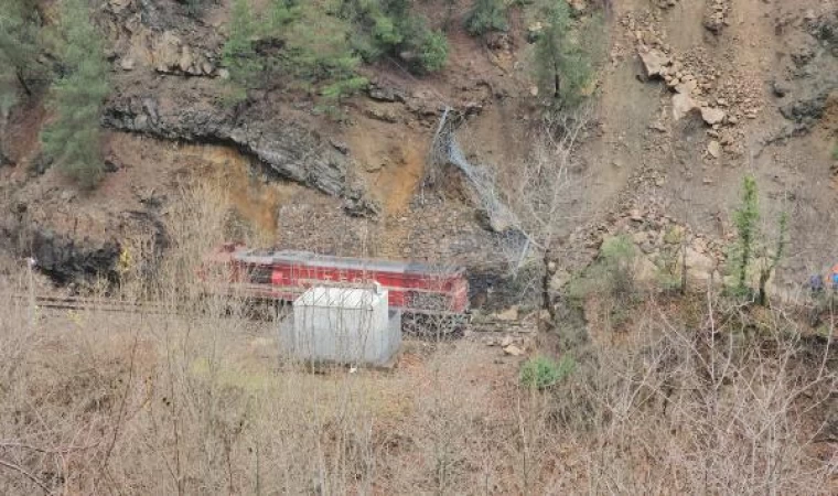 Zonguldak-Karabük arasında meydana gelen heyelan nedeniyle raydan çıkan yük treni, başka bir tren ile çekilerek tekrar demir yoluna indirildi. Lokomotifin vinçle raya oturtulacağı ve yürüyen aksamında sorun olmadığı belirtildi. Demir yolunu kapatan heyelan da temizlendikten sonra lokomotif, Karabük'e getirilecek.