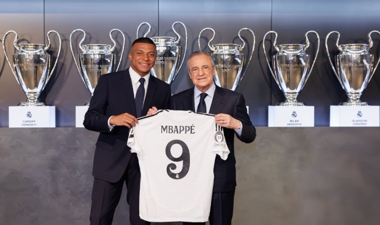 Real Madrid, Mbappe transferinde mutlu sona ulaştı. Başkan Florentino Perez’in de yer aldığı törenle Kylian Mbappe, kendisini 5 yıllığına eflatun-beyazlılara bağlayan sözleşmeye imza attı. Yeni sezonda 9 numaralı formayı giyecek olan Fransız yıldız, müze turunun ardından Santiago Bernabeu’da kendisini görmeye gelen taraftarları selamlayacak.