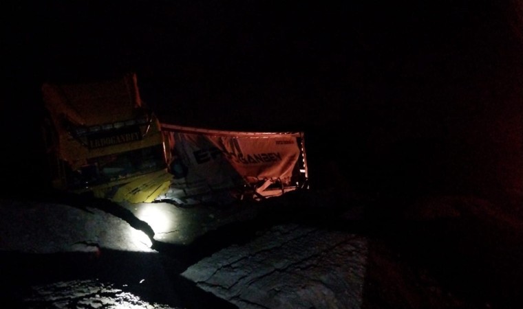 Erzincan’ın Refahiye ilçesinde devrilen tırda sıkışan sürücü AFAD ekiplerince kurtarıldı.