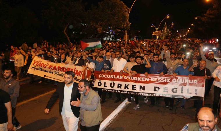 Diyarbakır’da sivil toplum kuruluşları (STK) öncülüğünde bir araya gelen binlerce kişi, İsrail’in Refah’taki saldırılarını protesto etti.