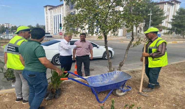 Adıyaman Belediyesi, deprem sonrası oluşan hasarları gidermek için şehir genelindeki refüj ve kavşakları yenilemeye devam ediyor.