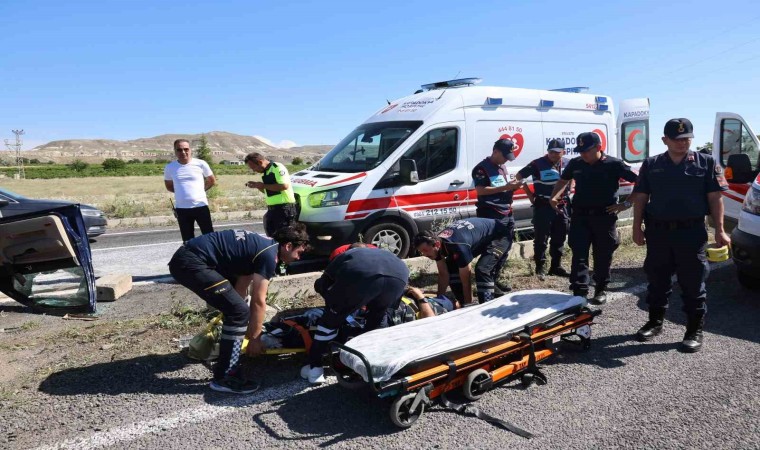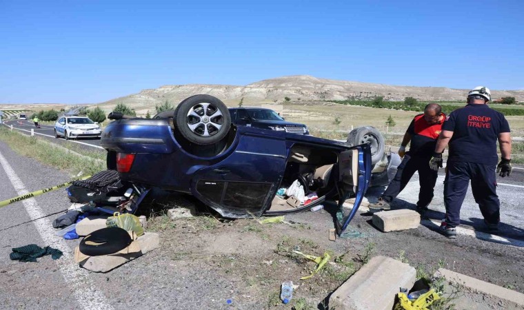 Nevşehir’de refüje çarparak havalanan otomobilin karşı şeride geçip devrilmesi sonucu 5 kişi yaralanırken; kazayı gören bir vatandaş, "Araba uçarak üzerimden geçti" dedi.