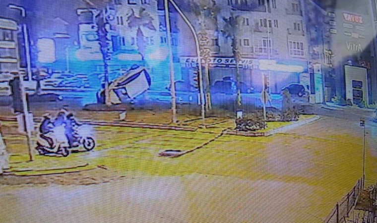 Aydın’ın Kuşadası ilçesinde kırmızı ışık ihlali yaptığı öne sürülen sürücünün kullandığı otomobil, refüje savrularak takla attı. Ters dönen araçtan çevredekilerin yardımıyla çıkarılan sürücü yaralanırken, o anlar kameraya yansıdı.