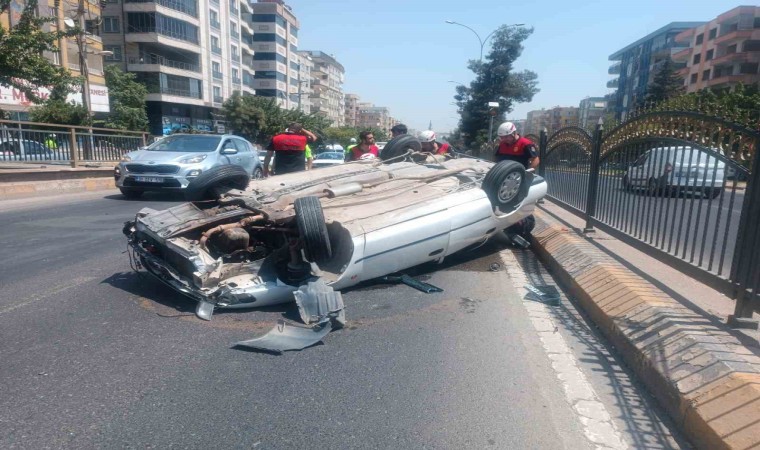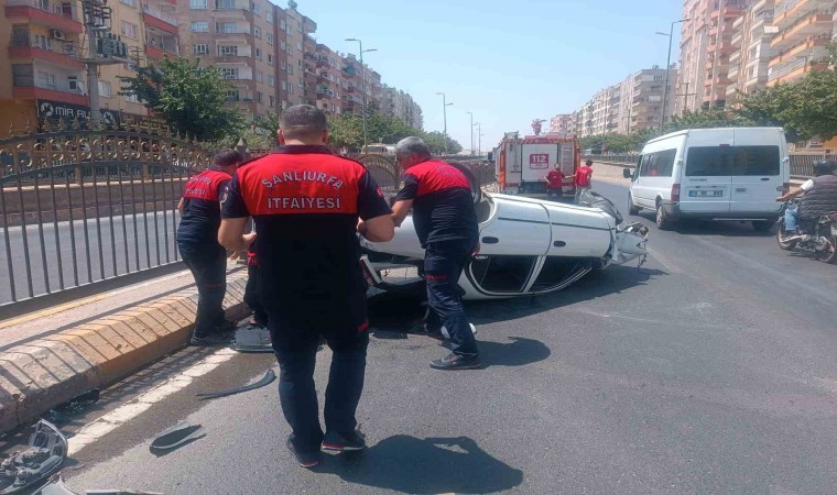 Şanlıurfa’da refüje çarparak devrilen otomobilin sürücüsü yaralandı.