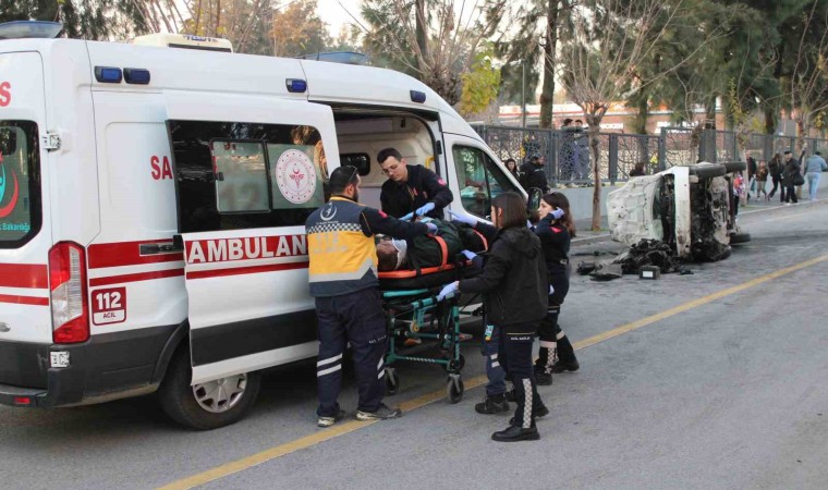 Aydın’ın Efeler ilçesinde kontrolden çıkarak refüje çarpıp takla atan araçta bulunan 4 kişi yaralandı.
