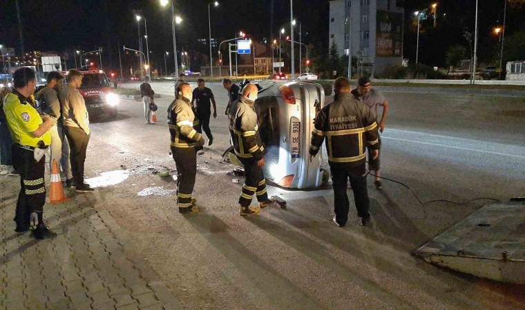 Karabük’te sürücüsünün kontrolünü kaybettiği otomobilin refüje çarpıp ters dönmesi sonucu sürücü yaralandı.