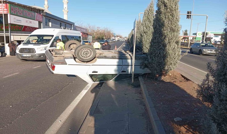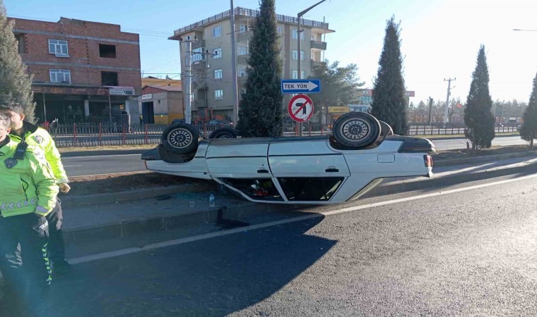 Diyarbakır’da sürücüsünün direksiyon hakimiyetini kaybederek refüje çarpıp, ters dönerek durabilen otomobilin sürücüsü ve eşi, kazadan burunları bile kanamadan kurtuldu.