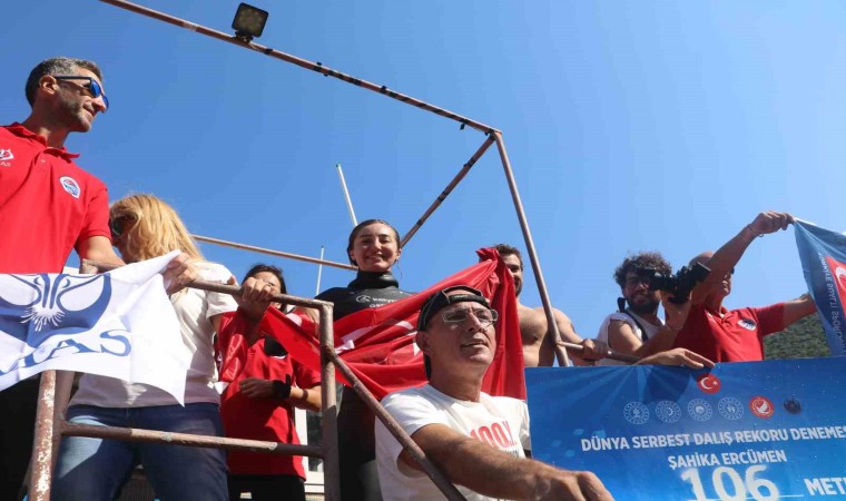Milli sporcu Şahika Ercümen, rekoru kırmanın mutluluğunu yaşadığını belirterek “Biraz stresli bir gündü. Hava şartları müsaade edecek mi diye tam bilmiyordum açıkçası. Herkes benim moralimi bozmamak için her şey yolunda diyor ama biraz böyle dalgalıydı deniz. Ona rağmen emeklerimiz boşa gitmedi. Rabbim utandırmadı. Çok güzel anlamlı bir proje için dalmıştım. Bu bölgede Karamağra’da daldım. Dünya rekorunu buraya kazandırdığım için çok mutluyum. Ülkemize Cumhuriyetimizin 100. Yılında bu dereceyi gerçekleştirdik. Dünya rekoru ile 100. yılımızı kutlamak benim için paha biçilemez” şeklinde konuştu.