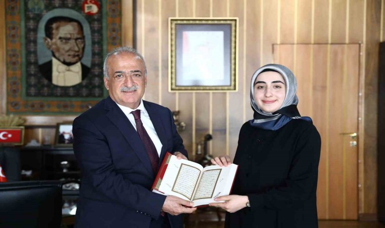 Atatürk Üniversitesi Rektörü Prof. Dr. Ömer Çomaklı, Kur’ân-ı Kerîm’i Güzel Okuma Yarışması’nda başarılı olan öğrencileri kabul etti.