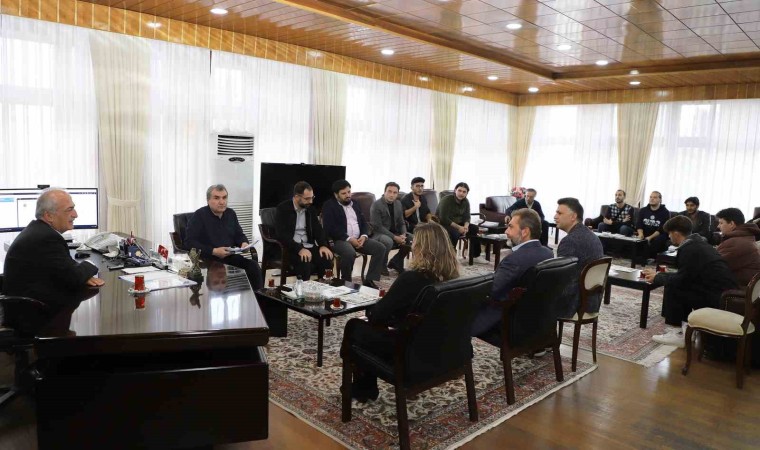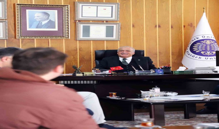 Öğretim üyeleri danışmanlığında Atatürk Üniversitesi öğrencilerinin oluşturduğu, Ön Lisans ve Lisans Araştırma ve Geliştirme Koordinatörlüğü ile Mühendislik Fakültesi bünyesinde faaliyet gösteren teknoloji takımlarını makamında ağırlayan Rektör Çomaklı, öğrencilerle bir süre sohbet etti.