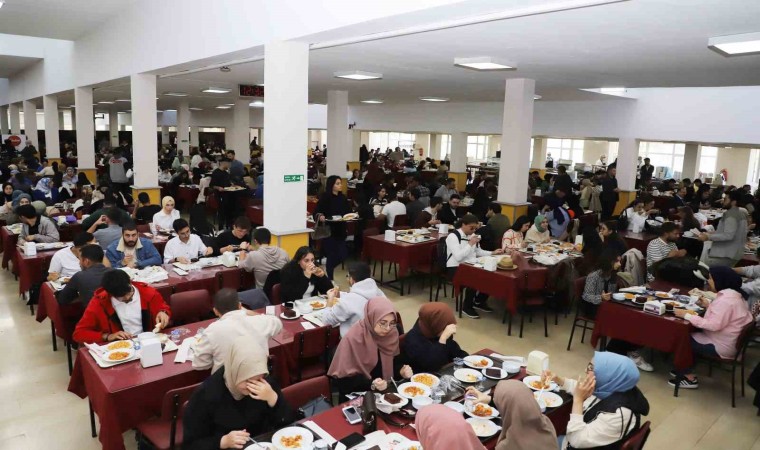 Merkezi yemekhaneyi ziyaret ederek öğrencilerle yemek yiyen Rektör Hacımüftüoğlu’na rektör yardımcıları ve rektör danışmanları eşlik etti. Günde yaklaşık 10 bin öğrenciye hizmet veren yemekhanede öğrencilerle birlikte sıraya girerek yemeğini alan Hacımüftüoğlu, ardından masalarına konuk olduğu öğrencilerle sohbet etti.